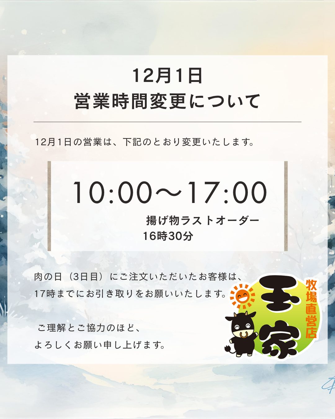 3. 【12月1日(月)営業時間変更のお知らせ】